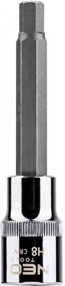Šestihranná koncovka na 1/2", H8 x 100 mm, CrV ocelová koncovka, S2 ocelový bit, certifikát TÜV M+T, záruka 25 let Šestihranný nástrčný bit 1/2" NEO s délkou 100 mm, vyroben dle normy DIN 7422. Nástrčná hlavice vyrobena z odolné chrom-vanadiové oceli. Šestihranný šroubovací bit vyroben z vysoce kvalitní legované oceli S2. Kvalitu nářadí potvrzuje certifikát TÜV a záruka výrobce na 25 let. Značka N...