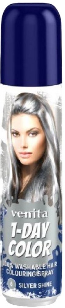 Toužíte po oslnivém stříbrném lesku během několika sekund? Venita 1-Day Color Spray v odstínu 6 Silver Shine je perfektní volbou pro každého, kdo chce svému účesu dodat výrazný metalický efekt bez trvalého barvení. Tento barevný sprej vytvoří na vašich vlasech zářivou stříbrnou mlhu, která skvěle doplní jakýkoli párty look, scénický styling nebo originální kostým.