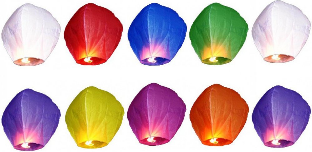 Předmětem aukce je sada 10 kusu lampionu.MIX BAREV.Standartní tvar zajišťující dobrý let