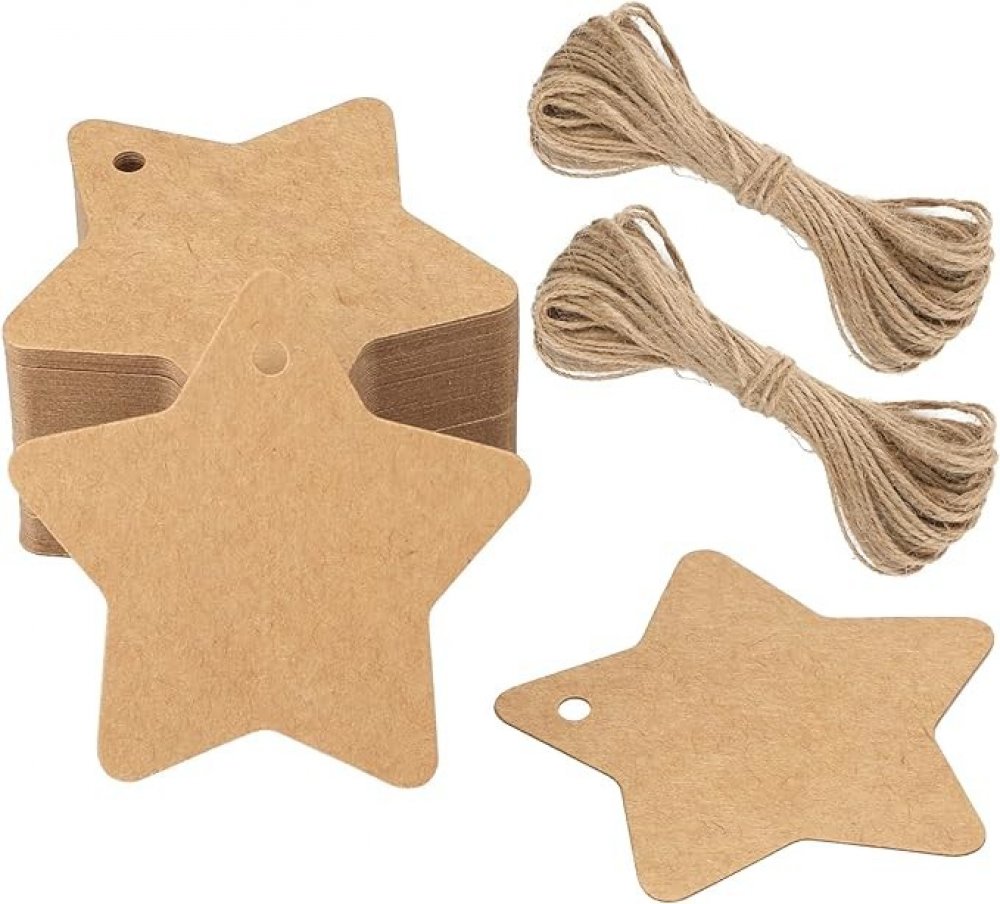 【Ekologický materiál】 100 kusů dárkových přívěsků s hvězdami. Vánoční přívěsky ve tvaru hvězd velikost: 6 cm * 6 cm , jsou vyrobeny z kvalitního papíru na karty 300 (GSM). Silný papír je dostatečně stabilní a silný, není snadno roztržen, nelepí se na sebe.