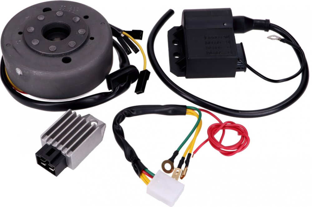 Alternátor / zapalování – přestavbová sada na 12V elektroniku, vhodná pro pravotočivý motor Sachs 506, pasuje na Puch Maxi E50 a Hercules Prima s motorem Sachs 506.