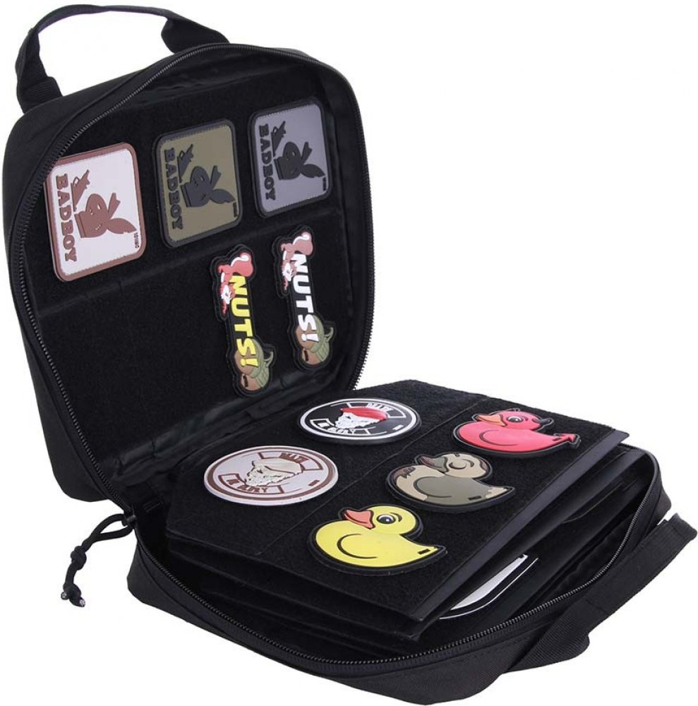 Pořadač na nášivky VELCRO v černé barvě ve tvaru tašky zapínané na dvoucestný zip. Chcete mít vaši sbírku nášivek pěkně zorganizovanou a přehlednou ? Tak právě pro vás je tento pořadač se suchými zipy to pravé. Mějte své velcro nášivky pěkně na jednom místě.