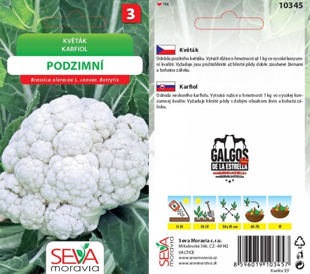 Středně raná odrůda vhodná pro polní pěstování z předpěstované sadby. Vytváří středně velké květákové růžice vhodné pro kuchyňskou úpravu nebo pro mražení.
