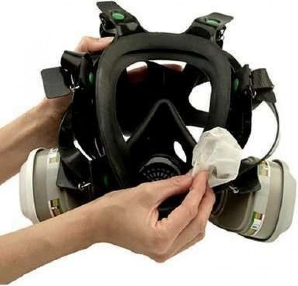 3M™ Čistič na obličejová těsnění 105 se dodává ve formě jednotlivě balených zvlhčených ubrousků a je určen k čištění obličejové části bez jejího poškození.