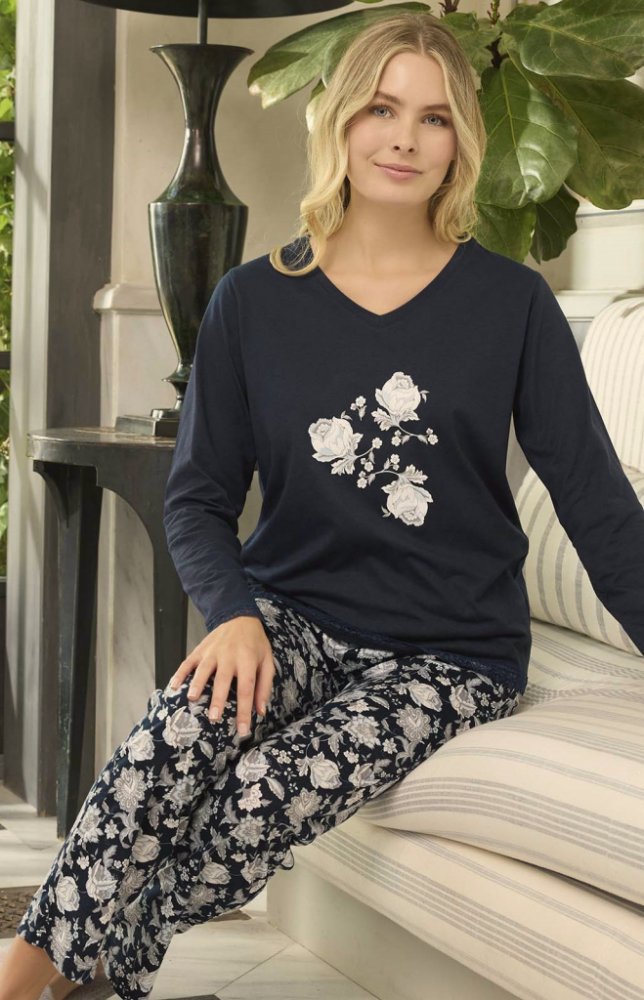 Tmavě modré i šedé pyžamo pro ženy či dívky z Lyocellu - šedé růže