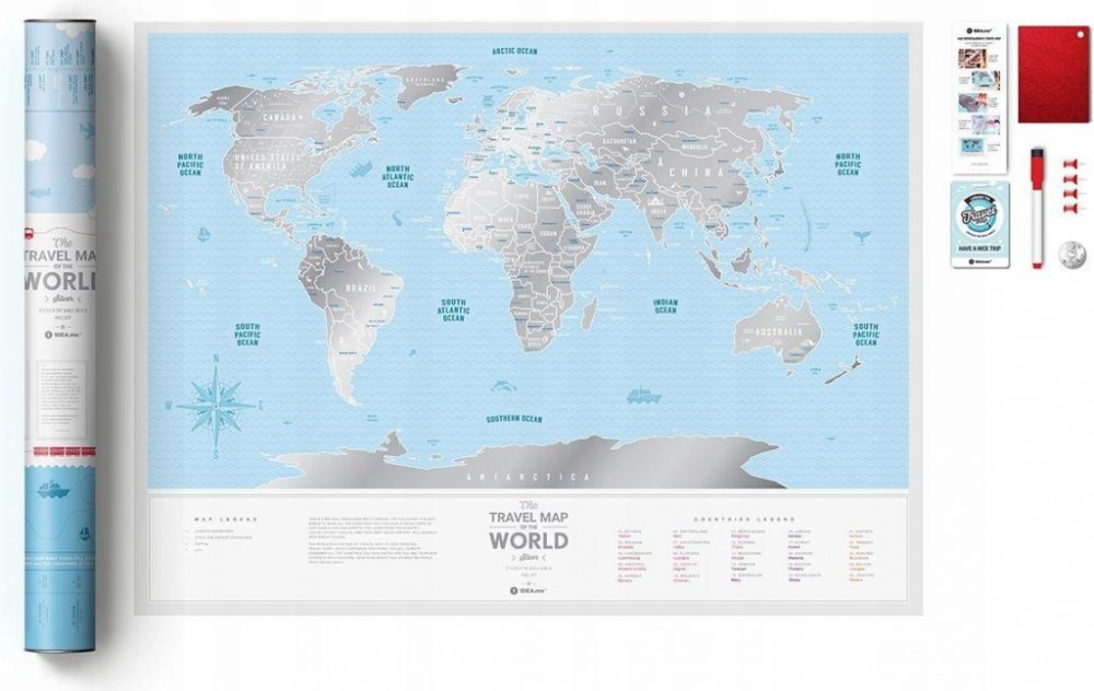 1DEA.me Stírací mapa světa Travel Map of the World Silver