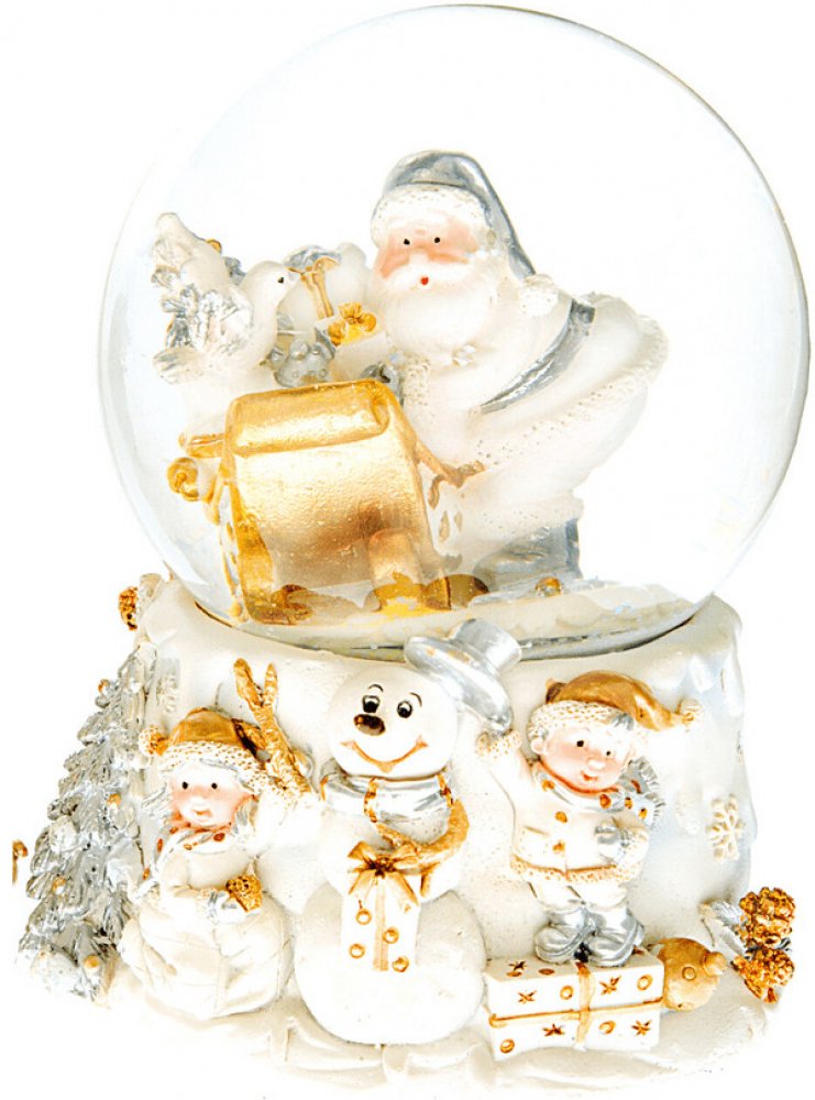 Sněžítko hrající se Santou a ptáčkem Sněžítko, tradiční vánoční dekorace, tentokrát hrající se Santou a roztomilým ptáčkem. Stačí zatřepat, natáhnout a kouzlo Vánoc je zase o něco blíž. Doplňkové informace Materiál: polystone Rozměry: 10 × 14 cm Barva: bílá, stříbrná, zlatá