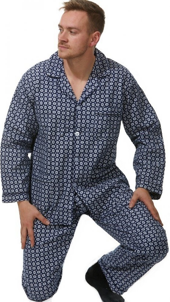 1PF0004 pánské pyžamo dlouhé propínací flanel modré