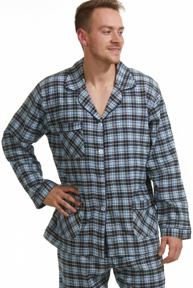 1PF0010 pánské pyžamo dlouhé propínací flanel modré