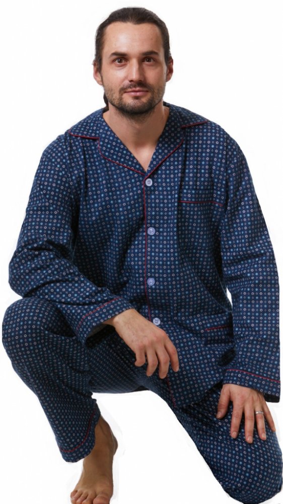 1PF0019 pánské pyžamo dlouhé propínací flanelové modré