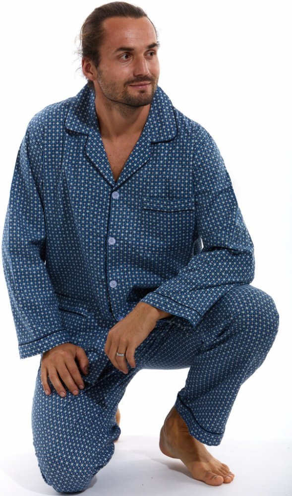 1PF0035 pánské pyžamo dlouhé propínací flanel modré