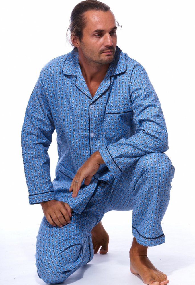 Nebesky modré vzorované teplé klasické pyžamo pro plnoštíhlé muže z flanelu