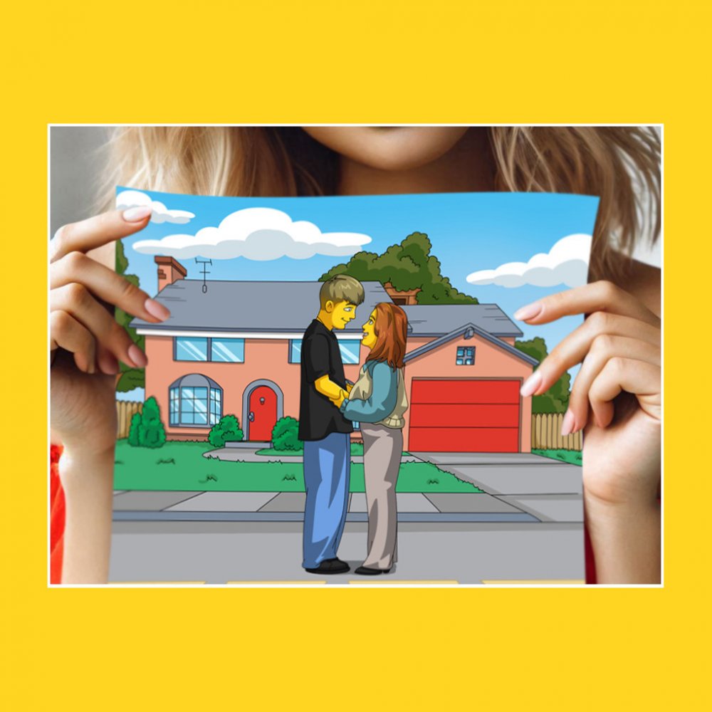 Ze zaslaných fotografií vás, vašich přátel nebo vaší rodiny namalujeme karikaturu ve stylu seriálu Simpsonovi na vybraném pozadí.