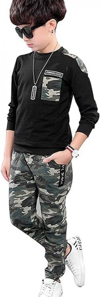 Položka obsahuje: tričko s dlouhým rukávem*1, maskáčové kalhoty*1. Materiál: Pohodlný kulatý výstřih. silná, měkká bavlněná směsová tkanina, vysoká kvalita a jemné zpracování. Ideální na jaro a podzim. Vlastnosti: Kalhoty s kamuflážním potiskem mají elastický pas a manžety pro dokonalé padnutí a pohodlí. 2 funkční boční kapsy. Vhodné pro malé chlapce a teenagery ve věku od 4 do 12 let: denní nošení, škola, klub, taneční cvičení, taneční oblečení, hodiny hip hopu atd.