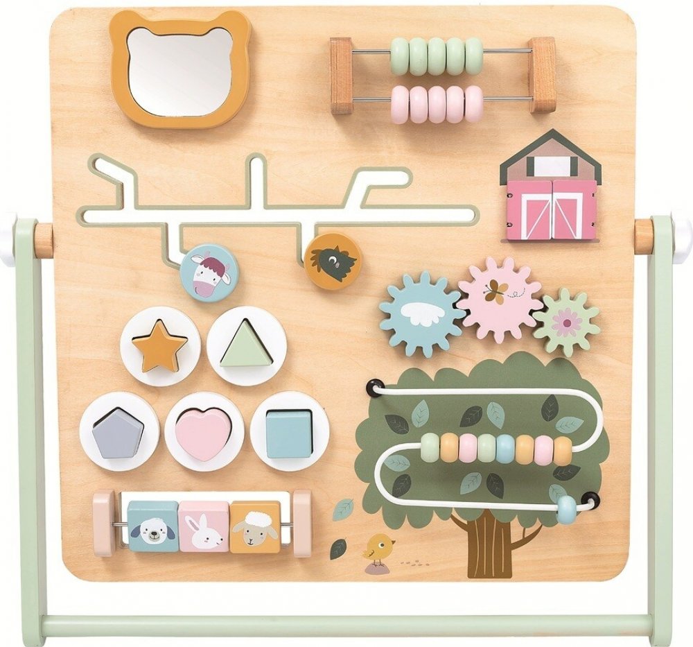 Tato hrací deska v pastelových barvách s roztomilými zvířátky přináší spoustu zábavy, díky které bude moci Vaše dítě rozvíjet zručnost, zvídavost a jemnou motoriku. Různé aktivity jako je korálkový labyrint, ozubená kolečka, otáčecí a posuvné destičky s obrázky zvířátek a další dávají dítěti možnost procvičovat otáčení, otevírání či zavírání a připravit se tak na úkony každodenního života. Jemné b...