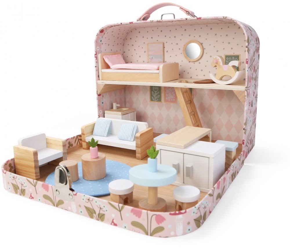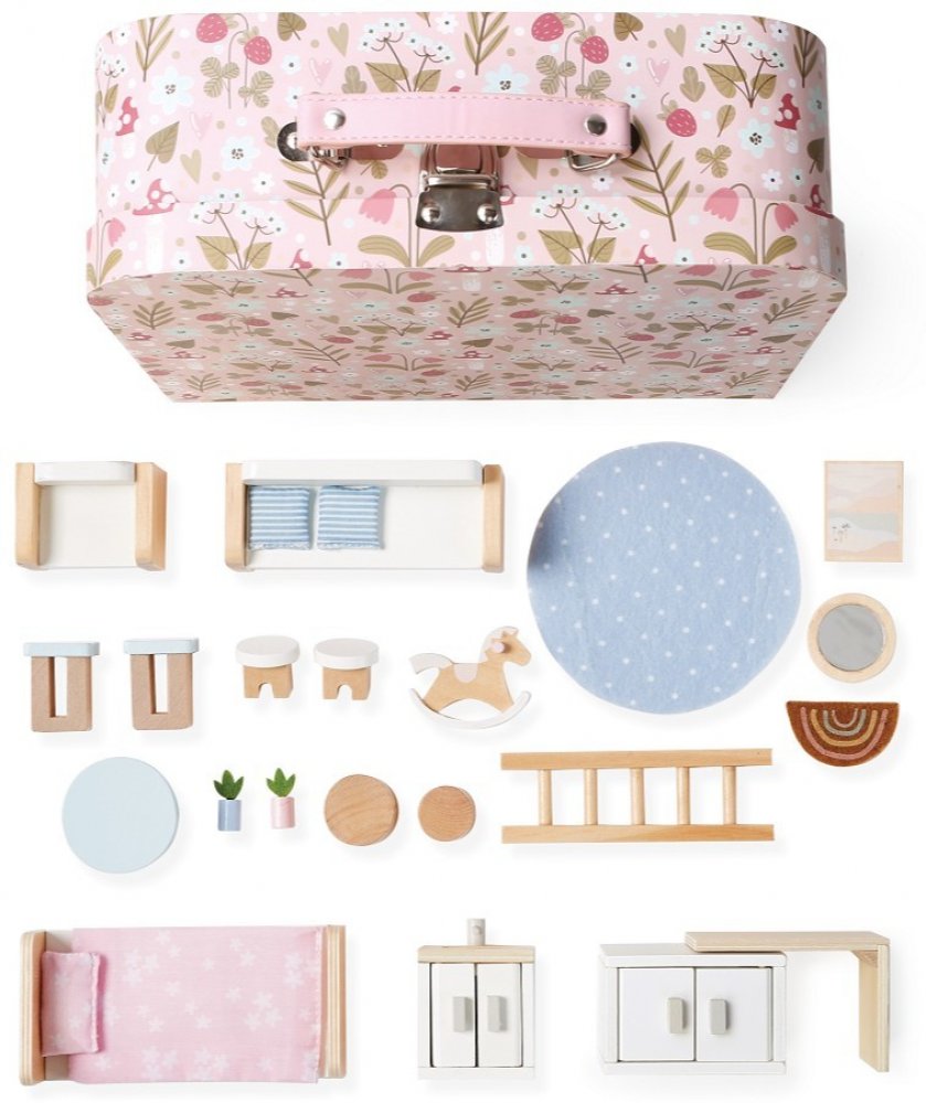 2Kids Toys Domeček pro panenky v kufříku Obývací pokoj - podrobné informace: Představte si kouzelný svět, který se vejde do ruky. Malý domeček pro panenky ukrytý v elegantním kufříku. Perfektní na cesty, hraní doma i na návštěvě u babičky. Tento originální kufříkový domeček se po otevření promění v útulné obydlí pro panenky, plné detailních dekorací, drobných nábytkových prvků a místností. V kufří...