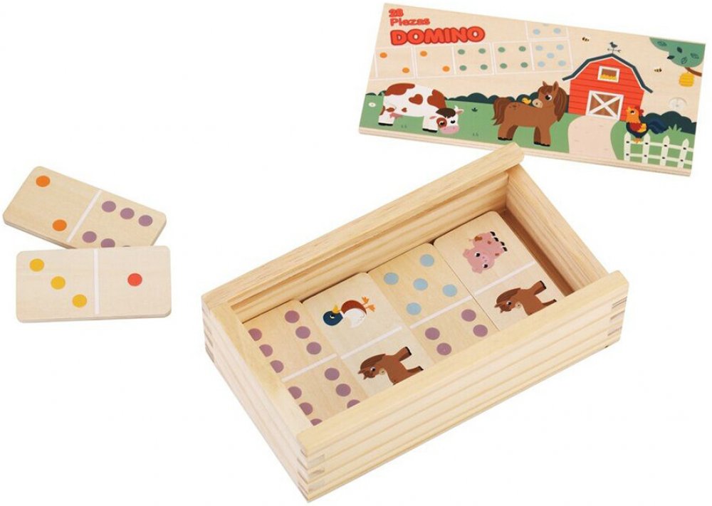 Jedna hra, dva způsoby zábavy pro malé i větší děti! S oboustranným dominem se děti nejen skvěle zabaví, ale také přirozeně rozvíjejí své schopnosti. Menší děti si užijí skládání pomocí veselých obrázků zvířátek z farmy, zatímco větší si zahrají klasické domino s puntíky a nenásilně si procvičí počítání i logické uvažování. Domino podporuje logické myšlení i jemnou motoriku a nabízí skvělou možnost ke společné hře dětí s rodiči, prarodiči nebo sourozenci. Příjemné pastelové a zemité odstíny barev spolu s kvalitním přírodním dřevem dělají z této hračky krásný doplněk každého pokojíčku. Uloženo v praktickém dřevěném boxu s víčkem. Hlavní vlastnosti oboustranné provedenírozvíjí logické myšlení a schopnost soustředěnípodporuje jemnou motoriku a koordinaciodolné a příjemné na dotekvhodné pro děti od 2 let