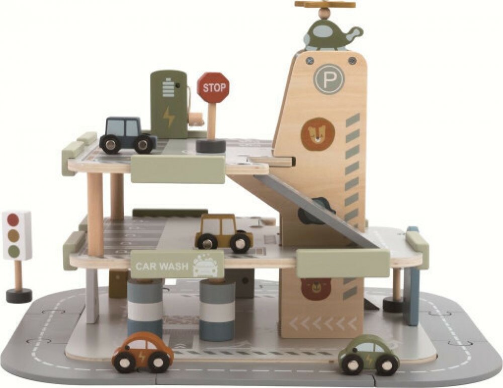Všem automobilovým nadšencům se rozzáří oči, až uvidí garáž se silnicí, výtahem a heliportem. Umístěte dopravní značky, připravte svá autíčka a hra může začít. Umyjte svůj vůz v auto-myčce.Natankujte pohonné hmoty u stojanu v přízemí. Máte elektro auto? Žádný problém, vyvezte svůj vůz pomocí výtahu a připojte ho k nabíječce ve druhém patře. Baterie je plná? Tak můžete vyrazit. Stala se nehoda? Z heliportu na střeše už startuje vrtulník.Tato edukativní hračka motivuje děti ke kreativní a představivé hře. Rozvíjí koordinaci ruka-oko, jemnou motoriku a zručnost. Garáž s parkovacími plochami na třech úrovních obsahuje také silnici, 4 autíčka, helikoptéru a 3 dopravní značky. Informace k produktu:3 podlažígaráž se silnicí, heliportem a výtahem, 4 autíčka, auto-myčka, 2 tankovací stojany (z toho 1 elektro), vrtulník, 3 dopravní značkyinspiruje ke kreativní a představivé hřerozvíjí koordinaci ruka-oko, jemnou motoriku a zručnostvhodné pro děti od 3 let
