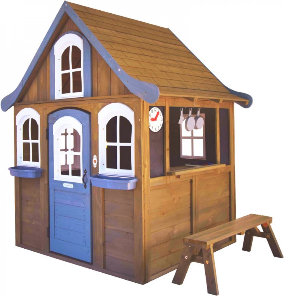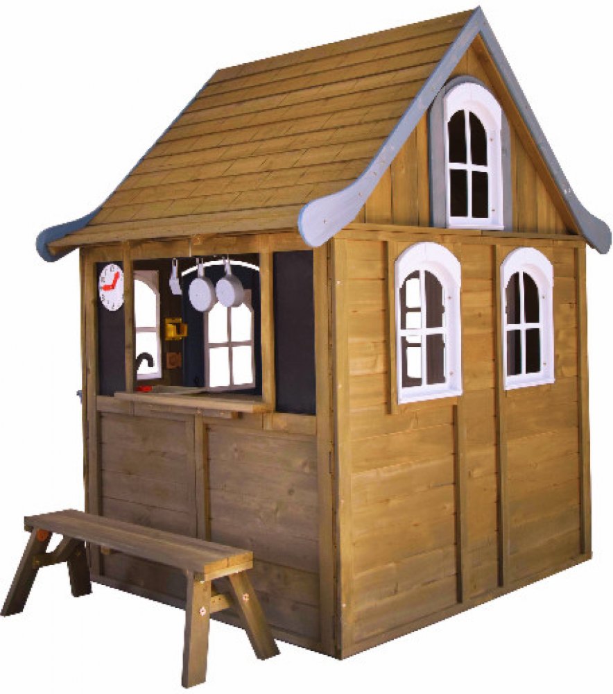 Sníte o poklidném místě, plném relaxu, zábavy a dobrého jídla? Pak jste na správném místě! V tomto rozkošném domečku se budete cítit jako v pohádce. Sněhově bílá okýnka zajišťují nepřetržitý přehled o svém okolí. Detaily jako hodiny, křídové tabulky a truhlíky na květiny přijdou jistě vhod. Útulná kuchyňka v podobě dřezu, vařiče a servírovacího pultu dává možnost malým gurmánům ukázat své kulinářské dovednosti. Díky lavičce se o své pochoutky můžete podělit se svými přáteli. Na co čekáte? Zazvoňte na funkční zvonek a zabydlete se! Ošetřeno základním nátěrem. Pro větší odolnost proti povětrnostním vlivům doporučujeme další ošetření dřevěných dílů. Domeček obsahuje: lavici na sezení (nosnost 50 kg)výdejní okno se servírovacím pultemfunkční zvonek (baterie 2xAAA/LR03 – nejsou součástí balení)kuchyňský dřez a hořák na vaření se 2 pánvemi a obracečkou2 truhlíky na květiny2 kreativní tabule s 1 hodinami Hlavní vlastnosti: rozvíjí sociální dovednostiútulný designkvalitní a detailní provedeníplastová oknatloušťka dřevěných stěn 2,7 cmdřevo ošetřeno nátěremvhodné pro hru více dětí Informace pro B2B partnery: dropshipping v rámci ČR!