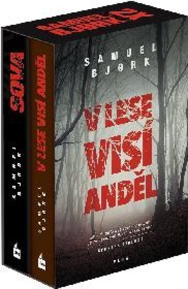 „Od dob Larssonova Millenia tu nejspíš nebyla tak zvláštní, nesourodá, a přitom skvěle fungující dvojice vyšetřovatelů jako u nadšeně přijímaného románu Samuela Bjorka...,“ napsal po českém vydání románu V lese visí anděl recenzent v Instinktu. A čtenářská obliba detektivek s Holgerem Munchem a Miou Krügerovou jeho slova potvrzuje. Policejní detektiv Holger Munch má těsně před důchodem a už se těší, až si bude naplno užívat vážnou hudbu, matematické hádanky a pokuřování cigaret. Mia Krügerovou je mladá vyšetřovatelka s obrovskou intuicí, ale jen stěží se vyrovnává s hrůzami, s nimiž se v práci potkává. Ale nemůže zůstat stranou, když Norskem otřásají podivné vraždy šestiletých holčiček, které někdo obléká do bílých šatiček a nechává v lese s cedulkou „Cestuji sama“ na krku. A ani tehdy, když se v lese na lůžku ze sovích per objeví tělo mladé dívky. Kdo jsou pachatelé těchto hrůzných činů, a co je k nim vede? Užijte si dvojitou dávku napětí s boxem 2x Samuel Bjork. Vychází v omezeném nákladu.