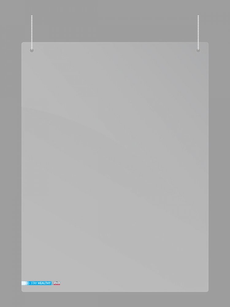 Elegantní ochranná stěna z transparentního plexiskla o síle 3 mm, pro zavěšení ze stropu pomocí řetízků. Zavěšení je možné jak svisle, tak horizontálně. Jednoduchá a rychlá instalace!