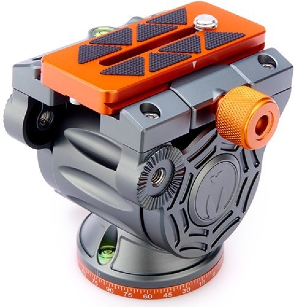 Hlava má fixně nastavený odpor kapaliny a protiváhy, lze ji naklonit až do 165° a kolem své panoramatické osy umožňuje plné 360° otáčení.