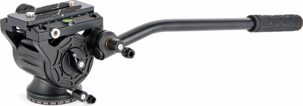Robustní fluidní videohlava se standardní video rychloupínací destičkou. Při hmotnosti hlavy 750 g poskytuje dostatečnou oporu až pro 10 kg zařízení.