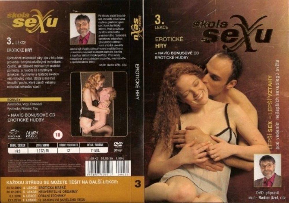 Škola sexu DVD 3. Erotické hry. Opravdové milenecké páry vás v této lekci provedou novými odvážnými technikami. Opravdové milenecké páry vás v této lekci provedou novými odvážnými technikami. Zjistíte, jak zábavné mohou být erotické pomůcky, a naučíte se smyslným dotekům. Rychlovky a fantazie okoření váš milostný vztah. Užijte si intimní sexuální pouto, které zaručí vašemu milování nekončící slast...