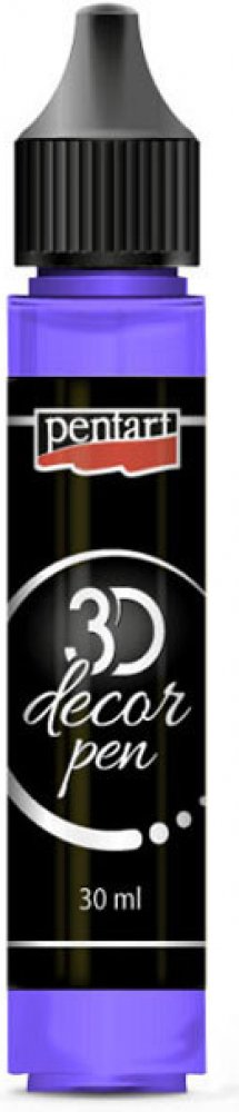 3D dekorační pero Pentart 30 ml / různé odstíny Exkluzivní novinka od známé značky Pentart nabízí umělcem vytváření 3D efektů v podobě kontur, teček a polperličiek. Dekorační pero má hustou barevnou konzistenci na vodní bázi. Je vhodné pro všechny typy povrchů. Transparentní odstíny vytvářejí efekt polodrahokamů a proto jsou vhodnější pro dekorování skla a na výrobu šperků. Metalické odstíny dodávají povrchu kovový vzhled. Doba schnutí závisí od typu povrchu. Při porcelánových nebo skleněných povrchů je doba schnutí 3 dny. V případě textilie je to týden nebo žehlením 30 sekund na stupni bavlna. Textilii lze následně prát v šetrném programu.
