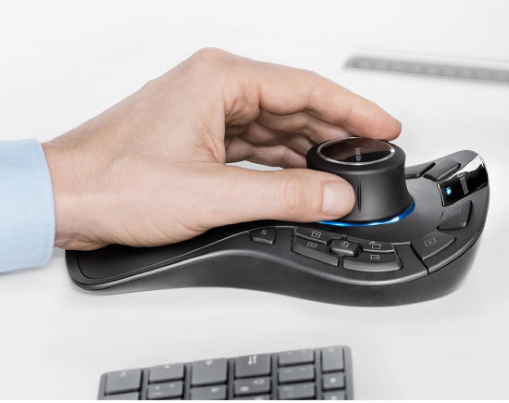 SpaceMouse® Pro Wireless je optimálním nástrojem pro mobilní práci. Bluetooth) a s až měsícem provozu na jedno nabití baterie.