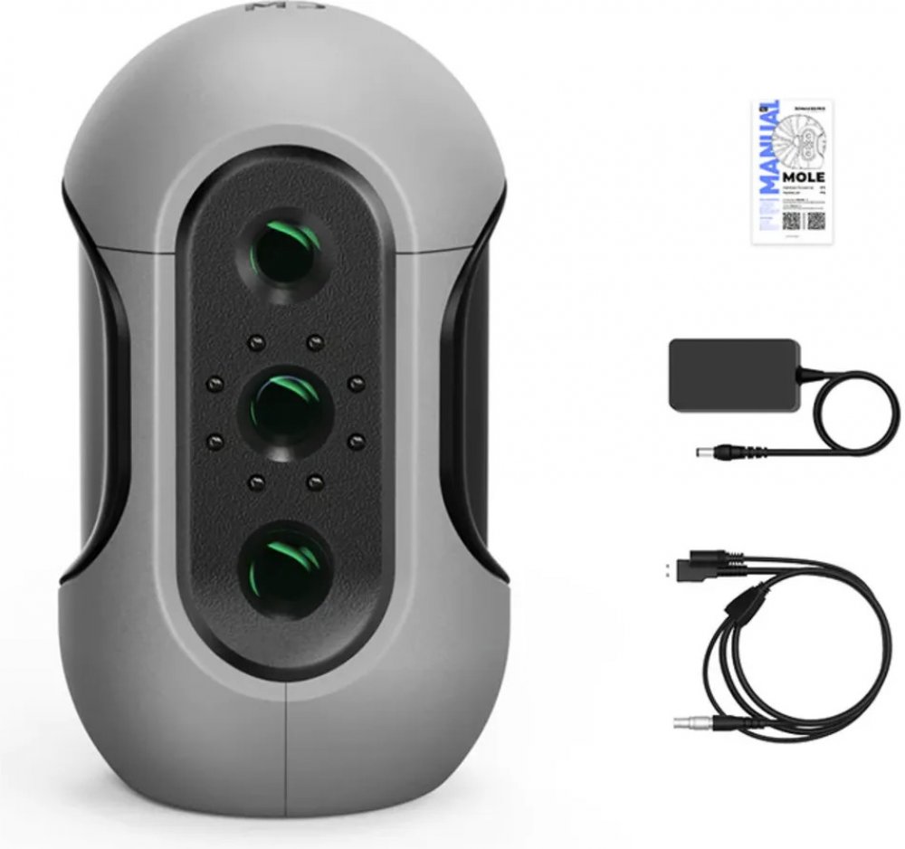 Kompaktní 3D skener Mole má ergonomický design, který je ideální pro ruční i otočný režim. Skener je vybaven tichými vnitřními ventilátory, které snižují teplotu a prodlužují provozní dobu.
