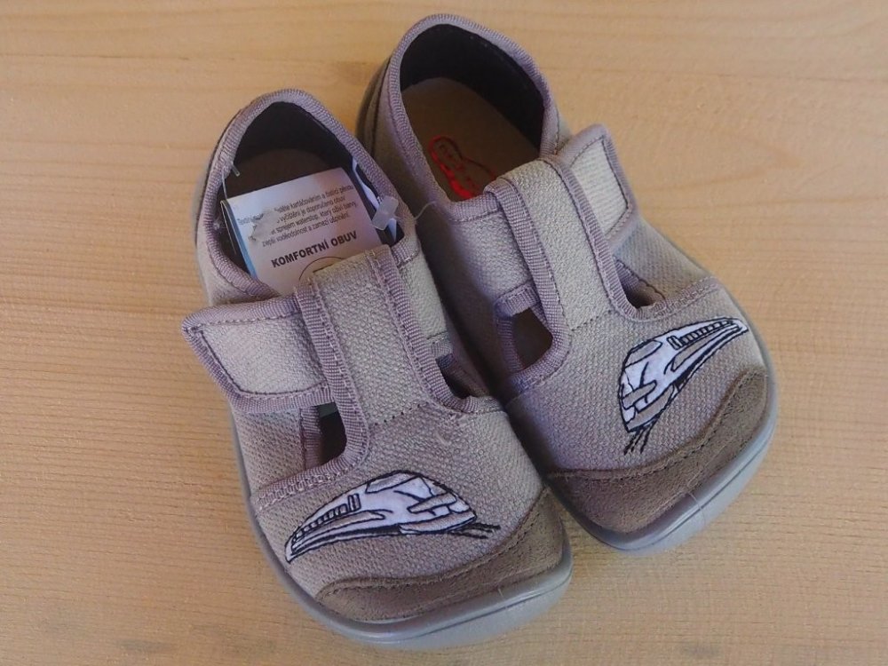 Textilní barefoot přezůvky s gumovou podrážkou.