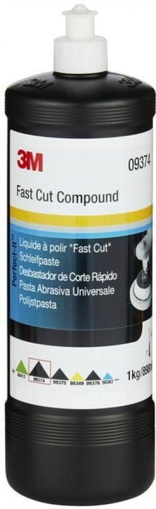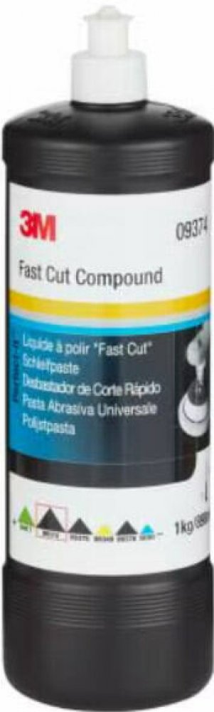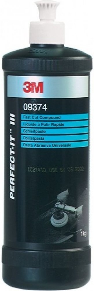 3M™ 09374 je hrubá směs pro použití na opravné nátěry k odstranění broušení škrábance po zploštění nebo obroušení brusnými kotouči 3M™ 260L P1200 nebo P1500 nebo mokrý brusný papír 3M™ Microfine 1500 a 2000. Lze jej také použít k odstranění lehké až střední oxidace a škrábance, škrábance z myčky atd., na originál barvy výrobce. 3M™ 09374 se doporučuje používat s elektrickým nebo vzduchem poháněný leštící stroj (1500-2500 ot./min) vybavený 3M™ Perfect-it™