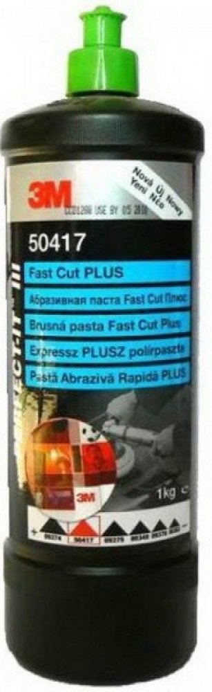 3M brusná pasta 50417 Perfect-it III FAST CUT PLUS - se zeleným víčkem, která se používá jako první brusná pasta po broušení na leštění standardních laků (se zeleným leštícím kotoučem č.50487) i keramických laků (také se zeleným leštícím kotoučem č.50487 nebo pro vyšší účinnost i s vlněným leštícím kotoučem č.50390). Doporučené otáčky 900 - 1700 ot/min. instruktažní video: NEBEZPEČÍ Způsobuje pošk...