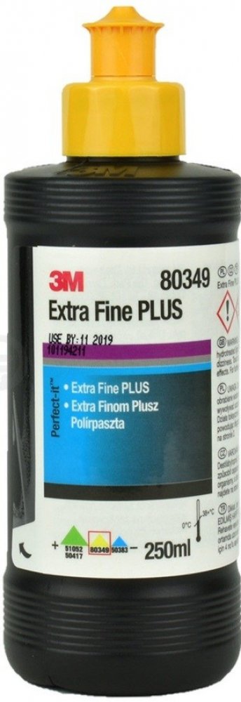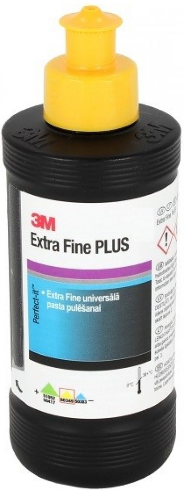 Brusná a lešticí pasta. Používá se na leštění keramických laků a na renovaci starých laků na leštících kotoučkách 3M 50488. Doporučené otáčky 1500—2500ot/min. Postup: Na rotační leštičku nasaďte lešticí kotouč na vysoký lesk 3M™ 50488 a naneste na něj jemnou brusnou pastu 3M™ Perfect-it™ Extra Fine . Přiložte kotouč na díl karosérie a spusťte leštičku. Postupujte napříč dílem, dokud nedocílíte vys...