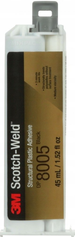 Dosáhněte vynikající pevnosti spoje přibližně za 3 hodiny s konstrukčním plastickým lepidlem 3M™ Scotch-Weld™ DP8005. Středně viskózní lepidlo spojuje polyolefiny bez nutnosti povrchové úpravy. Je vyrobeno s poměrem míchání 10:1 a má působivou dobu zpracovatelnosti 3 minuty. Může lepit mnoho plastů s nízkou povrchovou energií, včetně mnoha druhů polypropylenu, polyethylenu a termoplastických elastomerů (TPE).