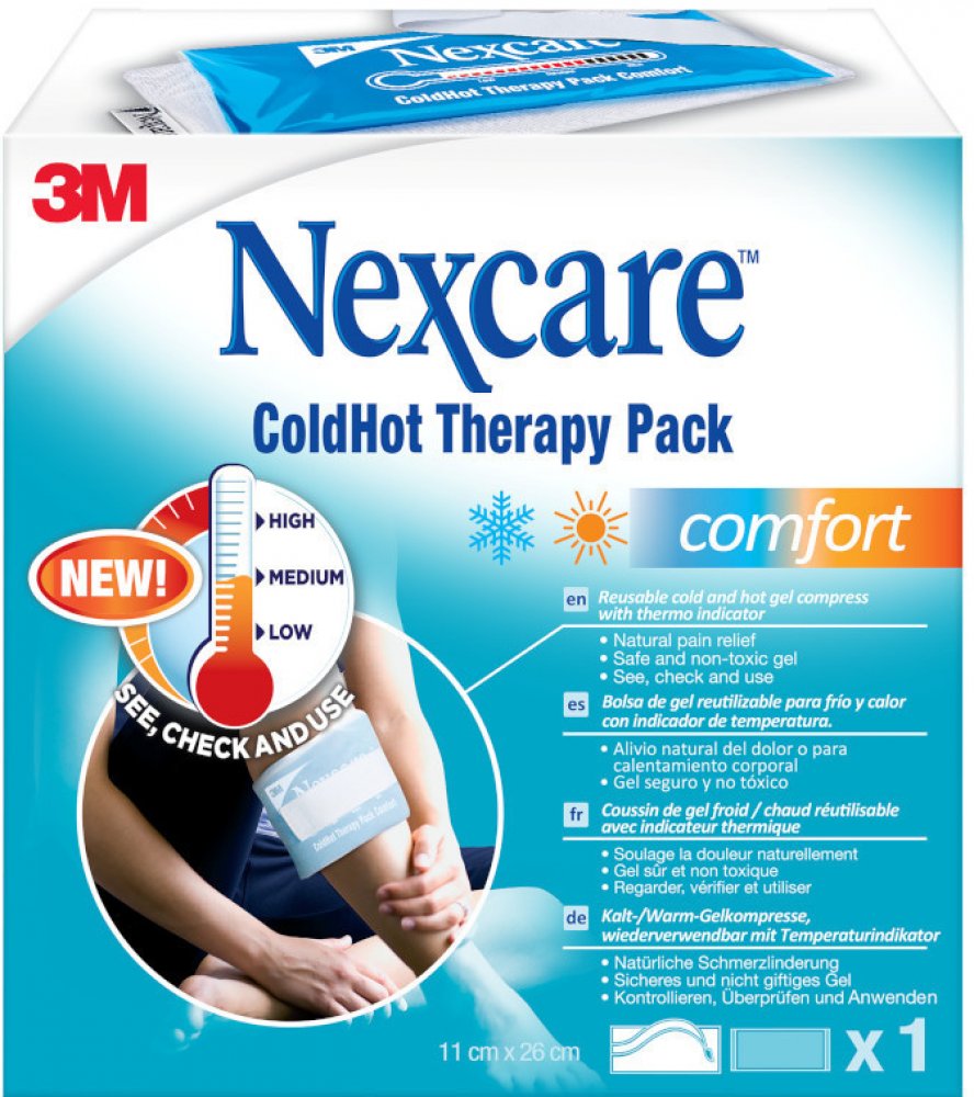 3M Nexcare ColdHot Therapy Pack Comfort je opakovaně použitelný gelový obklad, který jednoduchým způsobem umožňuje využít přírodní léčebné síly tepla a chladu. Včetně textilního obalu se suchým zipem pro upevnění na tělo.