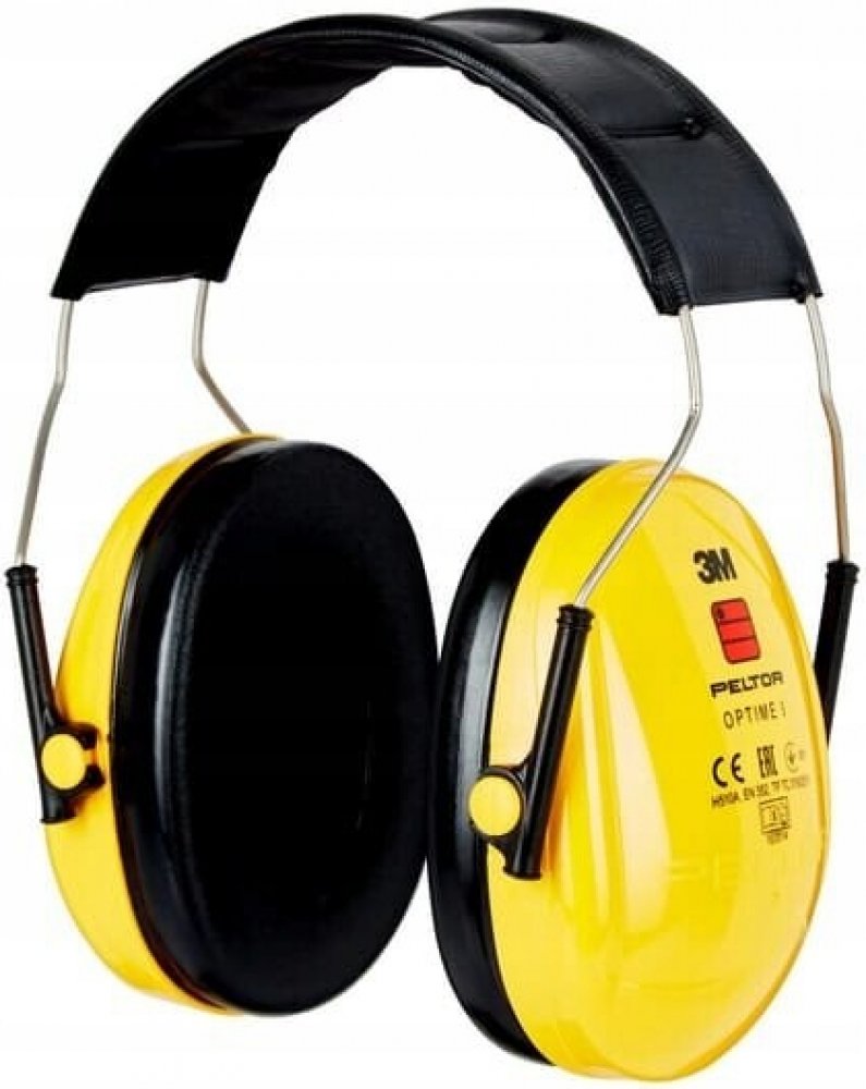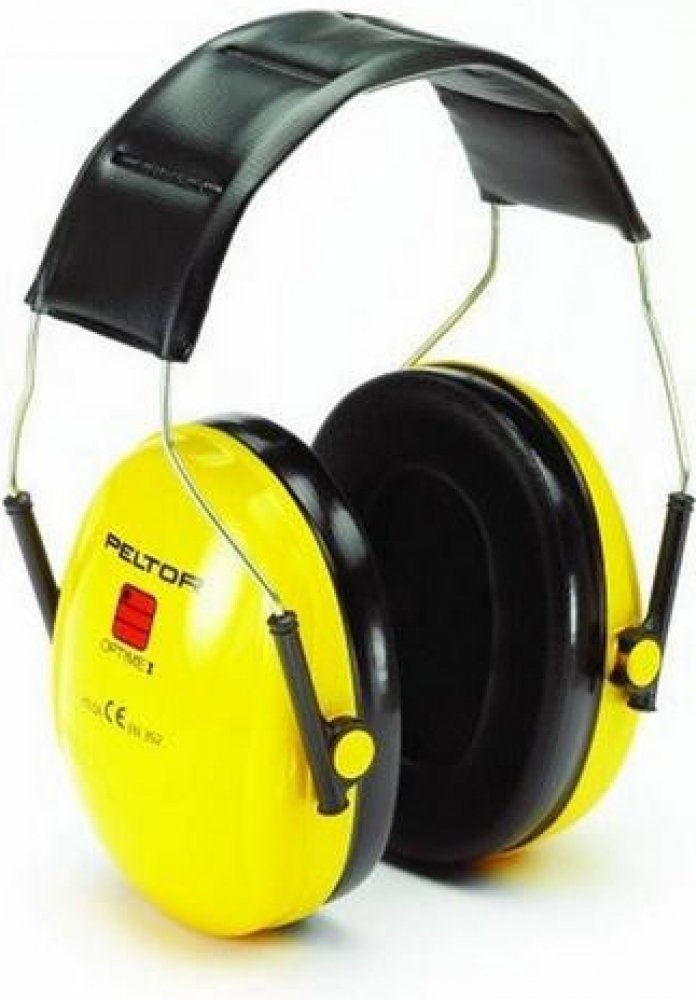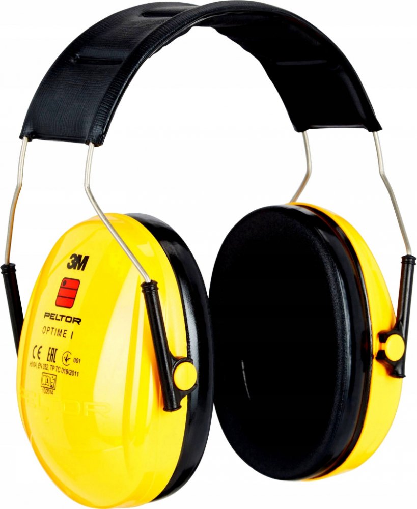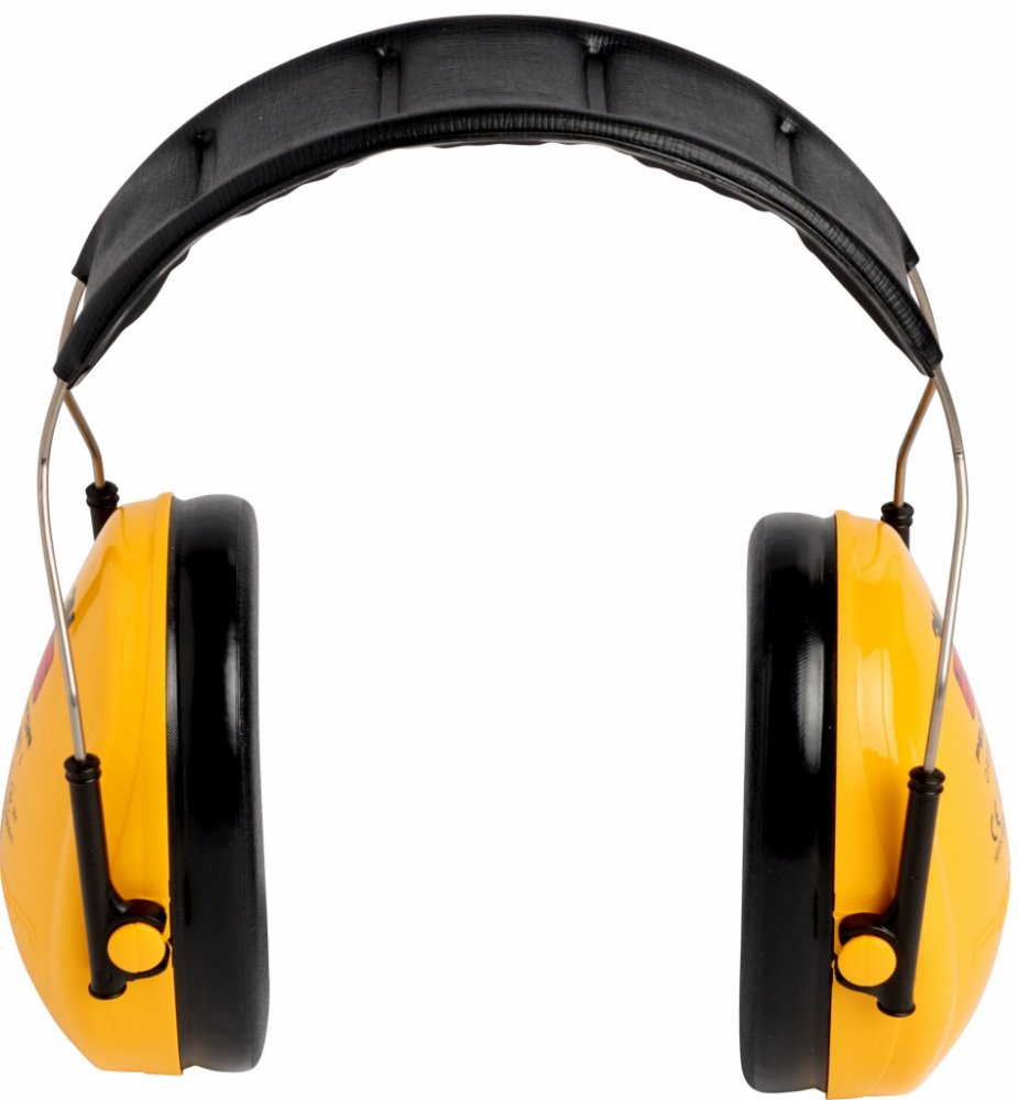 lehký žlutý mušlový chránič sluchu, pěnou plněným hlavovým obloukem a těsnícími polštářky; vhodný pro použití v průmysl...
