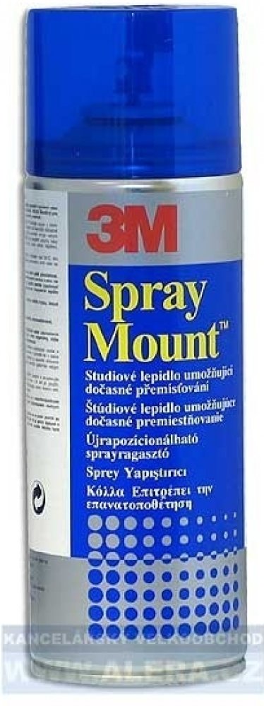 Podrobnosti o produktu 500-M01 Lepidlo ve spreji SprayMount Lepidlo ve spreji SprayMount. Lepidlo ve spreji Spray Mount, jedná se o sprejové studiové lepidlo. Poskytuje rychlý a bezpečný spoj, přičemž ponechává dostatečný čas pro případné přemístění. Čiré, nezanechává skvrny, nesvrašťuje se a stářím nekřehne. Lepidlo ve spreji SprayMount pro grafické úpravy, výtvarné práce, lepidlo pro studia a reklamní agentury i pro lepení a montáž mnoha druhů materiálů na téměř každý povrch.Jednička v lepidlech pro at..