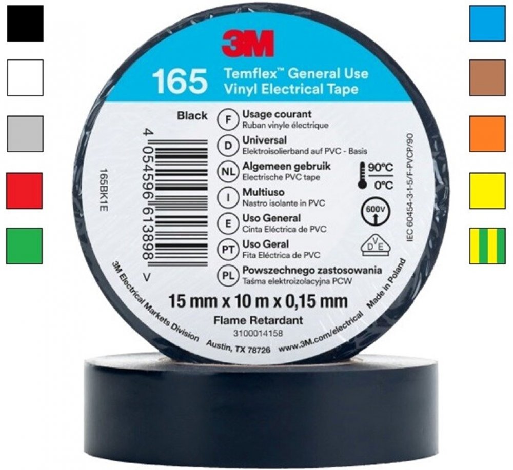 Spolehněte se na špičkovou izolační pásku 3M Temflex 165! Díky tloušťce 0,15 mm a použití PVC materiálu zajišťuje výbornou elektrickou izolaci a odolnost. Černé provedení z ní činí praktickou volbu pro široké spektrum využití. Ideální pro základní izolace vodičů a kabelů. Specifikace izolační pásky 3M Temflex 165 Izolační páska 3M Temflex 165 je navržena pro profesionální použití, zejména ve vnitřním i venkovním prostředí. Skvěle se hodí pro izolaci nízkonapěťových vodičů, opravy kabelů nebo svazkování vodičů. Vyrobeno z PVC se samozhášecími vlastnostmi s tepelnou odolností v rozmezí 0-90 °C. Ať už ji použijete doma, v dílně nebo na stavbě, vždy budete mít jistotu vysoké spolehlivosti. Rozměry kabelu jsou (š x d): 15 mm x 10 m. Shrnutí a doporučení produktu Izolační páska 3M Temflex 165 je praktickým doplňkem pro všechny, kdo vyžadují spolehlivou a snadno použitelnou pásku pro elektrotechnické aplikace. Pro lepší organizaci vodičů doporučujeme také vyzkoušet kabelové štítky a návlečky. Objevte celý náš sortiment izolačních pásek s různými parametry a vlastnostmi, které vám pomohou dosáhnout optimálního výsledku. O společnosti 3M Společnost 3M, do roku 2002 známá jako Minnesota Mining and Manufacturing Company, je americký nadnárodní konglomerát, který nabízí více než 75 000 produktů, jako jsou lepicí řešení, brusné materiály, elektrické obvody a další. V našem sortimentu najdete nejen zářezové konektory, ale i bohatou nabídku izolačních a lepicích pásek. Objevte kompletní škálu produktů od 3M ve spolupráci s K&V ELEKTRO.