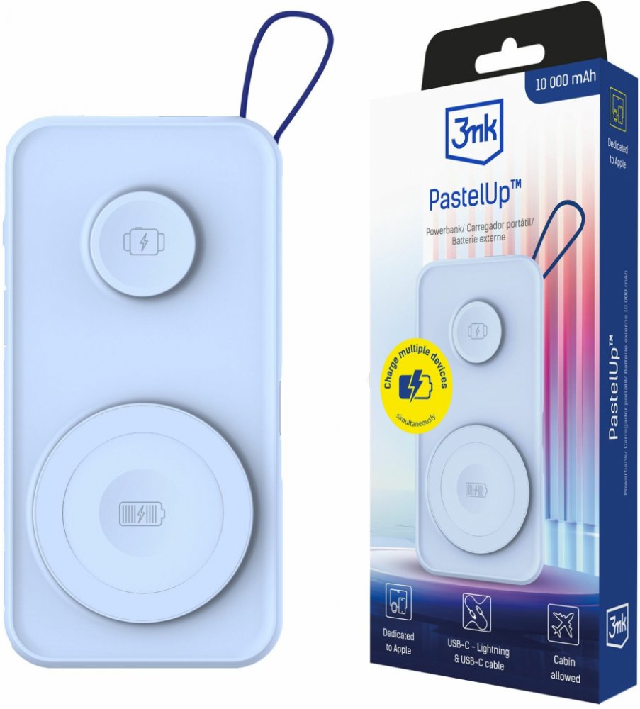 PastelUp™ nabíjí několik vašich zařízení najednou – v jedinečně pozitivním, moderním a inteligentním stylu, který je v segmentu powerbank zřídkakdy k vidění. V PastelUp™ jsme chytře uspořádali různé zdroje energie. Napájení můžete obnovovat bezdrátově a pomocí přiložených kabelů USB-C - Lightning a USB-C. Na výběr jsou 4 klasické a pastelové barvy, které přispívají k lehkému a svěžímu designu powerbanky.