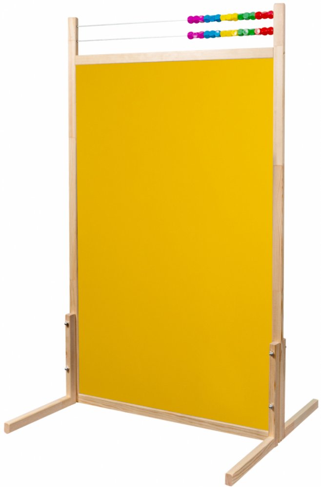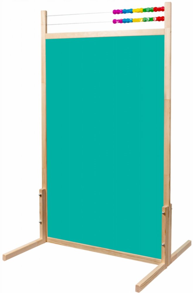 Kreslit lze na obě strany tabule, na jednu fixem a na druhou křídami. Součástí tabule je i dvouřadé počítadlo, které obsahuje 15 barevných kuliček v každé řadě.