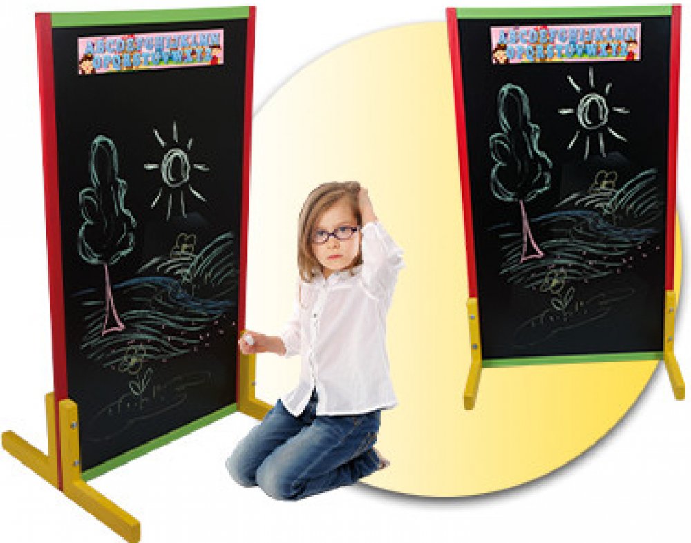 Jedna strana tabule určená pro křídu a druhá, magnetická pro malování s fixy