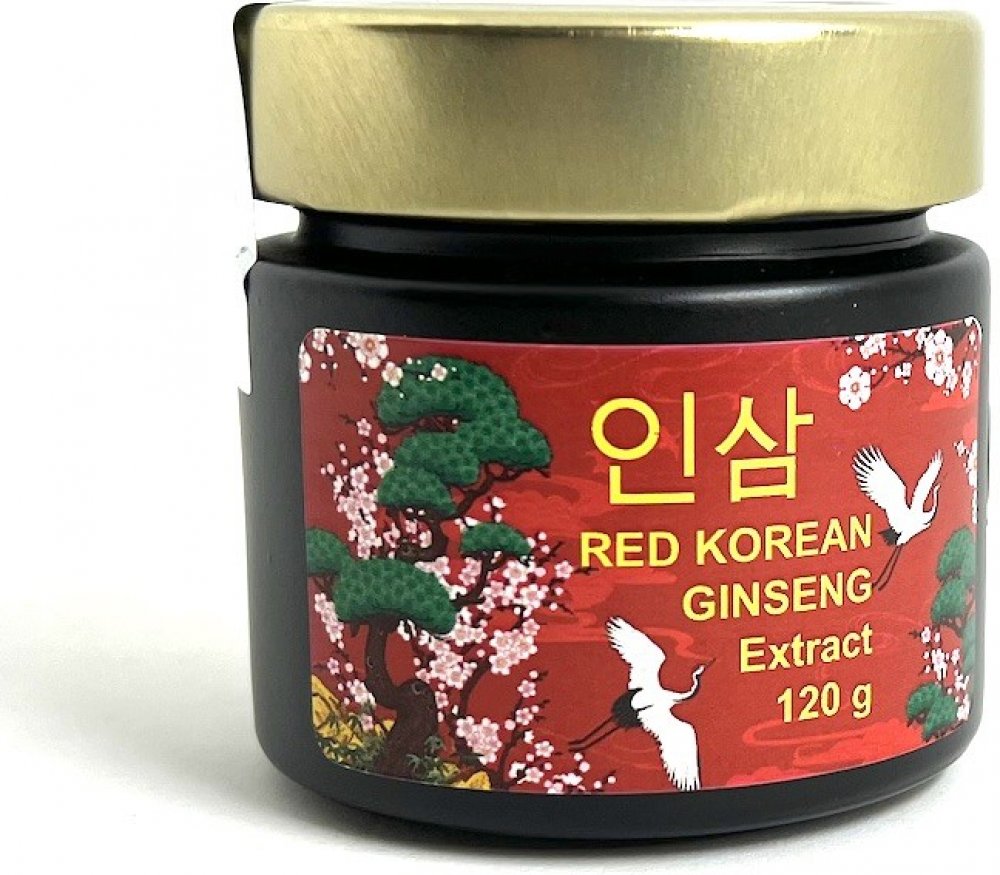 Vynikající tekutý extrakt korejského červeného ženšenu ve skleněné dóze, vynikajíci chuť.