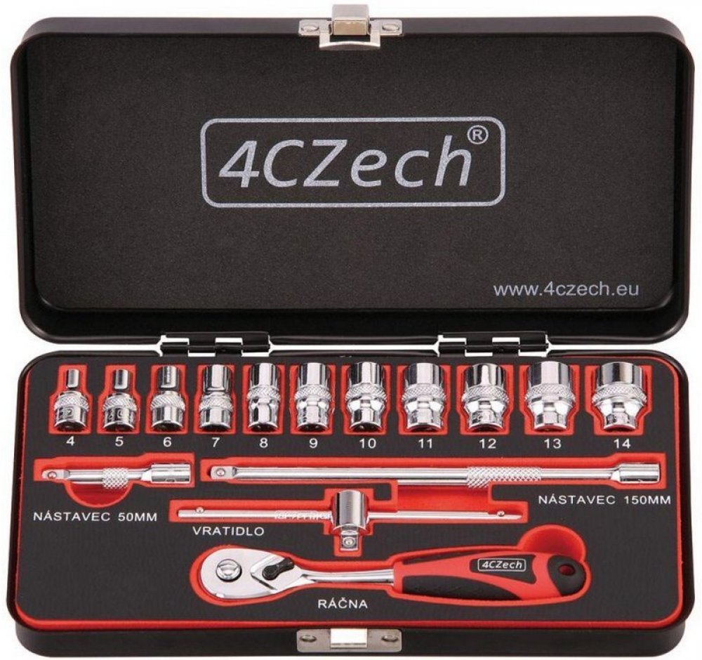 Produkt: 1/4" 15dílná sada nástrčných hlavic 4-14mm + ráčna 72 zubů - 4CZ-146-15