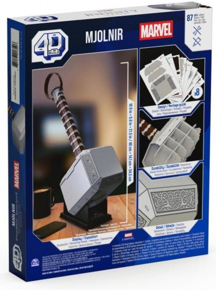 Tento 4D model Thorova kladiva Mjolniru si přímo říká o vystavení na vaší poličce! Vydejte se na dobrodružství superhrdinů s našimi 3D puzzle ze světa komiksů Marvel: The Infinity Saga.