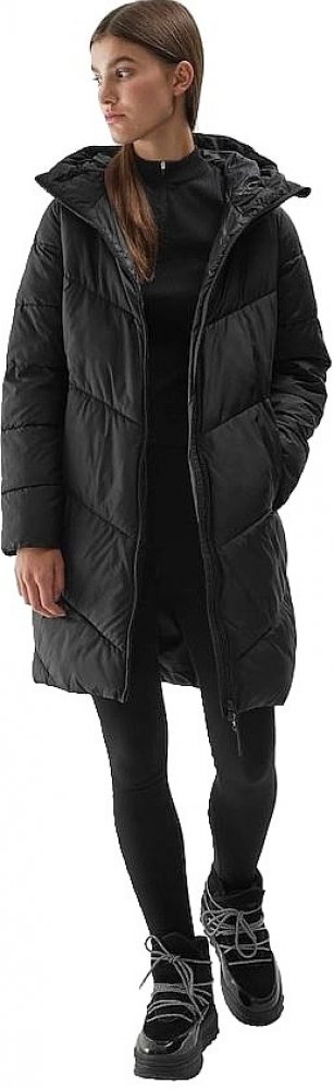 Dámský péřový kabát s výplní ze syntetického peří, díky čemuž zajišťuje optimální tepelný komfort v přechodném období. Kabát má dodatečný impregnační povlak, který chrání proti nadměrné absorpci vlhkosti zvenčí. hydrofobní impregnace materiálu omezuje absorpci vnější vlhkosti hlavní zip zabezpečený vnitřní větruvzdornou klopou s ochranou brady vnitřní, elastické manžety pro dodatečnou ochranu dlan...