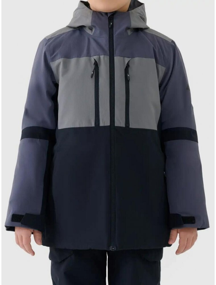 Chlapecká lyžařská bunda od značky 4F je skvělou volbou pro zimní sporty i volnočasové aktivity na horách. Díky membráně NEO DRY WP 10 000/MVP 8 000 poskytuje spolehlivou ochranu proti sněhu, dešti i větru a zároveň zajišťuje optimální prodyšnost pro celodenní pohodlí. Vnější vrstva s vodoodpudivou impregnací zabraňuje nasákání materiálu a podlepené všechny švy účinně brání pronikání vlhkosti do bundy. Rip-stop tkanina je odolná proti mechanickému poškození a profilované lokty zvyšují volnost pohybu. Integrovaná kapuce chrání před nepříznivým počasím a nastavitelná délka rukávů umožňuje přizpůsobení podle potřeb. Větrací otvory v podpaží na zip podporují regulaci teploty. Praktické kapsy, jako jsou dvě boční a dvě náprsní se zapínáním na zip, kapsa na skipas, vnitřní kapsa na brýle a vnitřní kapsa na suchý zip, poskytují dostatek úložného prostoru pro všechny nezbytnosti. Vnitřní manžety, nastavitelné vnější manžety na suchý zip a integrovaný sněhový pás pomáhají chránit proti vniknutí sněhu a chladu. Spodní část bundy je nastavitelná elastickou stahovací šňůrkou se zarážkou, což zajišťuje dokonalé přizpůsobení. Nechybí ani reflexní prvky pro lepší viditelnost a bezpečnost za zhoršených podmínek. Tato bunda kombinuje funkčnost, odolnost a moderní design, ideální pro všechny malé lyžaře a milovníky zimních radovánek.