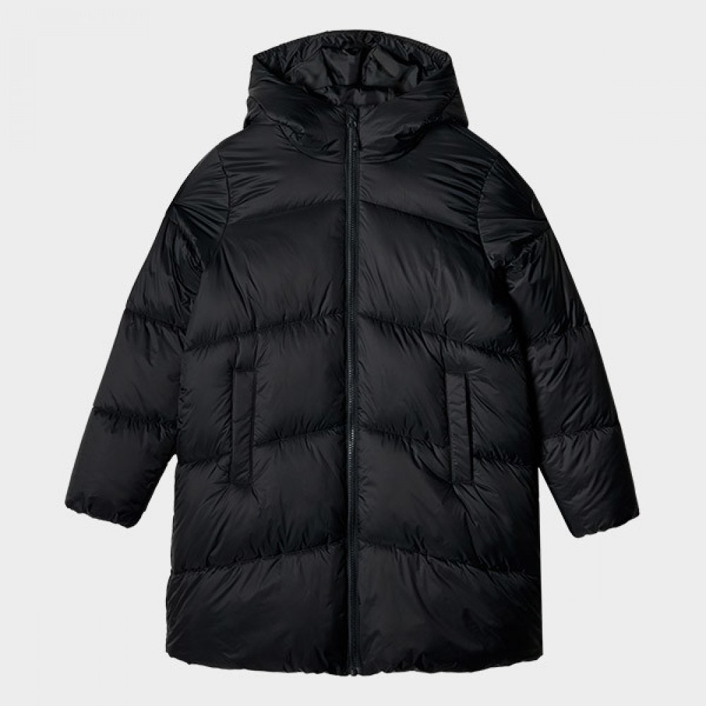 Dívčí péřový kabát s kapucí se zvýšeným objemem a hmotností výplně je ideální volbou pro chladné a zimní dny při každodenních nebo sportovních aktivitách. Zaručuje velmi dobrou ochranu při nízkých teplotách a zároveň plný komfort během různých povětrnostních podmínek. Kabát má klasické horizontální prošívání, které se skládá z rovnoběžných pruhů vedoucích napříč bundou. Tento druh prošívání zajišť...