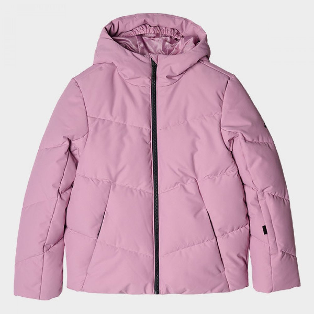 - Dívčí lyžařská bunda s membránou je vybavená integrovanou kapucí bez regulace. Krk je krytý vysokým límcem zatepleným měkkým trikotem, který dále chrání před chladem a větrem. Rukávy jsou zakončeny nenastavitelnými manžetami. Na bocích jsou 2 kapsy na zip. Na levém rameni je malá kapsa ski pass se zapínáním na zip pro uložení skipasu nebo jiných drobností. Dívčí lyžařská bunda se zapíná na jednosměrný hlavní zip s vnitřní větruodolnou légou, která omezuje pronikání chladu dovnitř bundy.